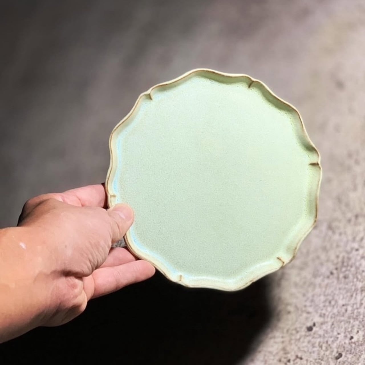 リムの部分が少しだけ立ち上がっている薄めの平皿です。