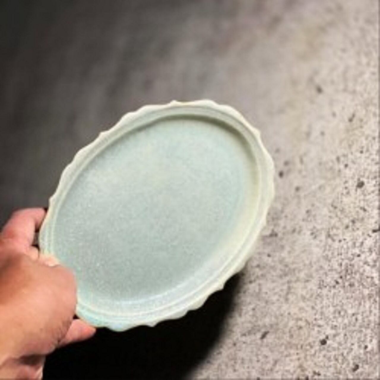 だえんフリル皿(小) くすみ青