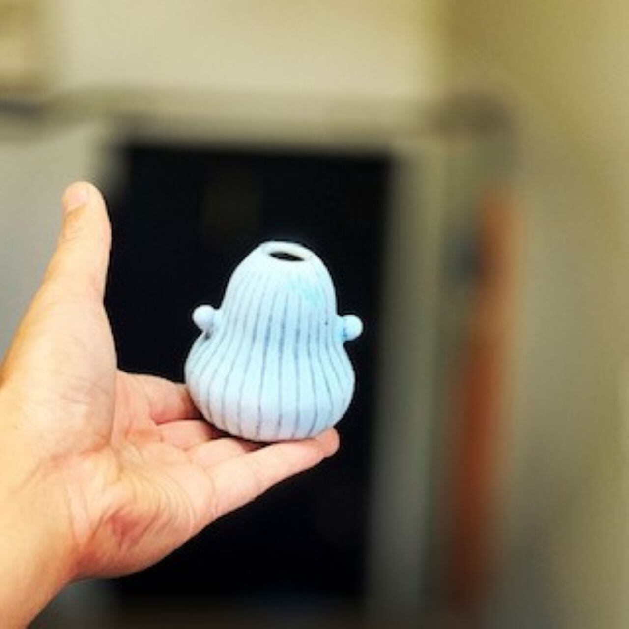 洋なしの形をした一輪挿しに丸ぽち耳をつけてみました。
